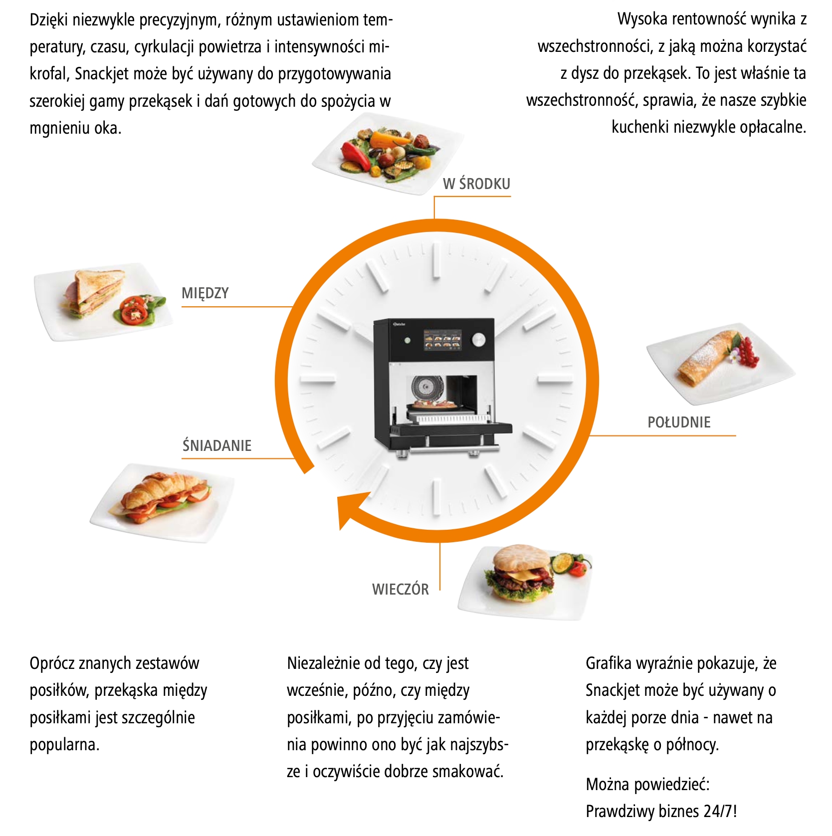W świecie, w którym liczy się każda sekunda, również w sektorze gastronomicznym rośnie presja czasu. Urządzenia Snackjets są idealne dla każdego w branży gastronomicznej, kto koncentruje się na jakości i wydajności. Dzięki 1024 programom, każdy z 15 elastycznymi fazami gotowania, najróżniejsze potrawy można przygotować bez wysiłku i z doskonałymi rezultatami. Maksymalna wydajność przy minimalnym wysiłku w najkrótszym możliwym czasie – dla py- sznych chwil, które po prostu zachwycają wszystkich.
