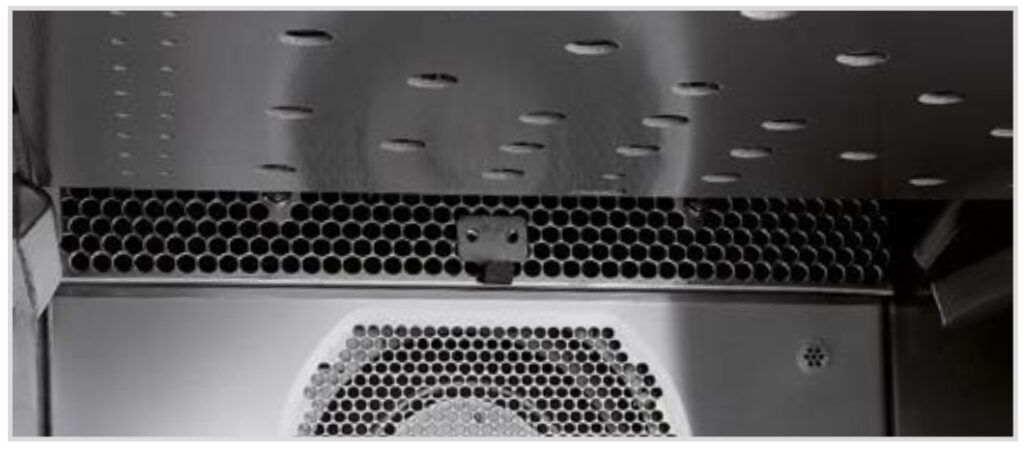 Filtr z węglem aktywnym zainstalowany nad komorą ma działanie neutralizujące powietrze wewnątrz komory. Oznacza to, że zapachy ryb lub mięsa nie są przenoszone z wcześniej przygotowanego produktu na kolejne produkty. Żadne zapachy nie są również uwalniane do otoczenia: nic nie stoi na przeszkodzie, aby korzystać z blatu lub przedniej strefy gotowania.
