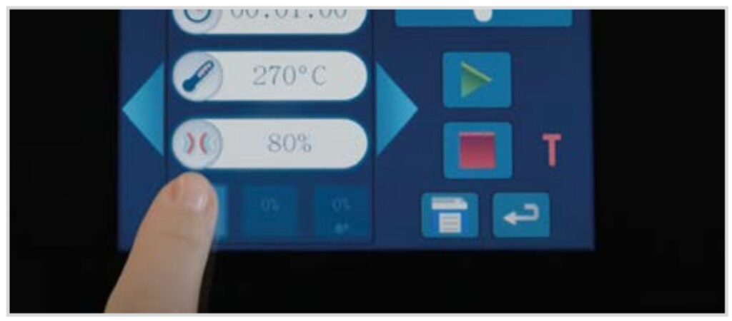Urządzenia Snackjet 200 + 200 S są obsługiwane w całości za pomocą nowoczesnego wyświetlacza dotykowego, który oferuje intuicyjną nawigację po menu. Wystarczy kilka kliknięć, aby wybrać żądany program, elastycznie dostosować fazy gotowania i rozpocząć proces – bez skomplikowanych ustawień, bez zgadywania. Niezależnie od tego, czy jesteś początkującym, czy profesjonalistą, ten piekarnik sprawia, że przygotowanie przekąsek jest dziecinnie proste.
