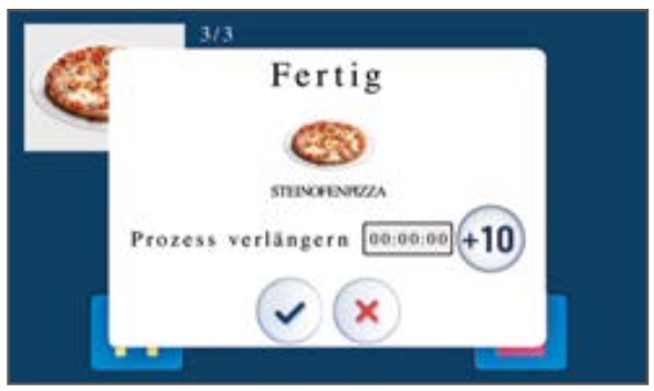 Po zakończeniu programu użytkownik podejmuje decyzję: Jeśli wynik gotowania jest prawidłowy, potrawa jest podawana. Jeśli nie jesteś zadowolony, możesz łatwo przedłużyć program gotowania. Wystarczy dodać czas w 10-sekundowych odstępach.